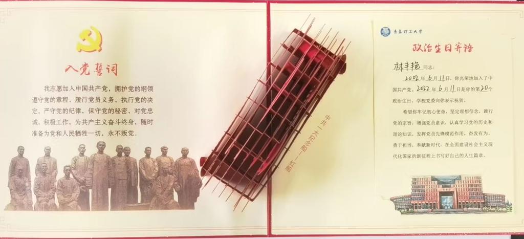 2002年6月11日,林丰艳同志光荣地加入了中国共产党。2022年6月11日是林丰艳同志的第20个政治生日,中心党支部为林丰艳同志发放了政治生日贺卡并合影留念。希望林丰艳同志可以牢记初心使命,坚定理想信念,践行党的宗旨,增强党员意识,认真学习党的历史和理论知识,发挥党员先锋模范作用,奋发有为、勇于担当,奉献新时代,在全面建设社会主义现代化国家的新征程上书写好自己的人生新篇章。