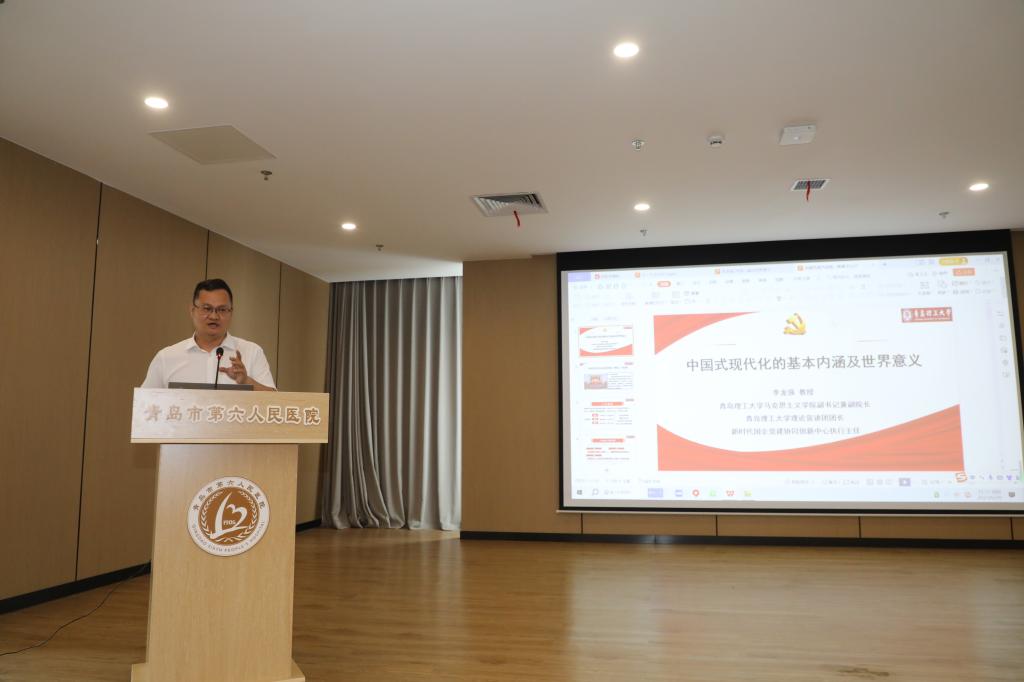 2023年6月29日,VSport理论宣讲团团长、新时代国企党建协同创新中心执行主任李龙强教授赴青岛市第六人民医院参加“七一”建党纪念日主题会议,此次会议旨在深入领会伟大建党精神的丰富内涵和时代意蕴,并把有关中国式现代化的学习宣传贯彻起来,领悟红色传统、赓续红色血脉。
