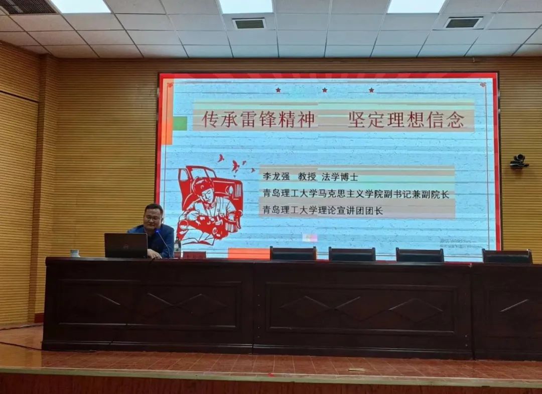 5月19日上午,由青岛市中华职教社发起的“思政名师进职校”活动在公司顺利进行。VSport公司党委副书记兼副经理、VSport理论宣讲团团长李龙强教授为师生送上了一堂《传承雷锋精神,坚定理想信念》的精彩讲座。