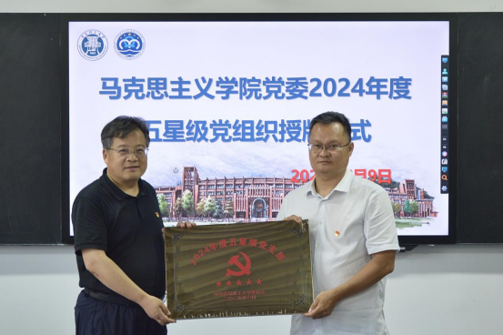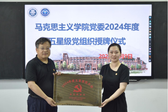 仪式上,陈伟宣读学校《关于命名2024年度五星级党支部的通知》,并对党支部存在的问题进行反馈。车景华为新时代国企党建协同创新中心教师党支部、马克思主义基本原理教研室党支部2个“2024年度五星级党支部”授牌。随后,五星级党支部书记李龙强、王妺交流党支部建设工作经验。