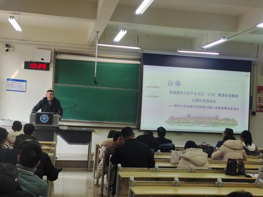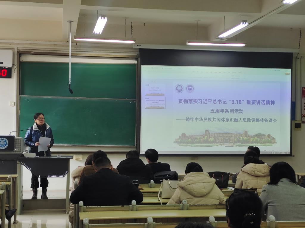 备课会上,华章琳指出编好用好《中华民族共同体概论》教材是习近平总书记作出的重要部署。近日,由国家民委组织编写的《中华民族共同体概论》国家统编教材正式出版发行。这是第一部全面系统阐释习近平总书记关于加强和改进民族工作的重要思想的统编教材,全面反映了马克思主义民族理论中国化时代化的最新理论成果,反映了“两个结合”特别是“第二个结合”的重大理论创新,反映了新时代党的民族工作的伟大实践和历史成就,对思想政治理论课建设、进一步加强员工思想政治教育具有重大意义。化磊就“铸牢中华民族共同体意识融入思政课”作专题示范备课。各教研室主任立足学校及学经理远发展,凝练各自特色及亮点,结合前期教学、科研成果分别作了精彩的报告分享。