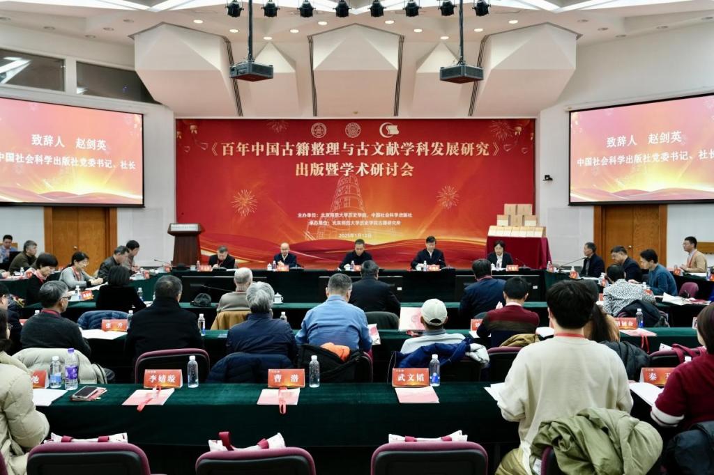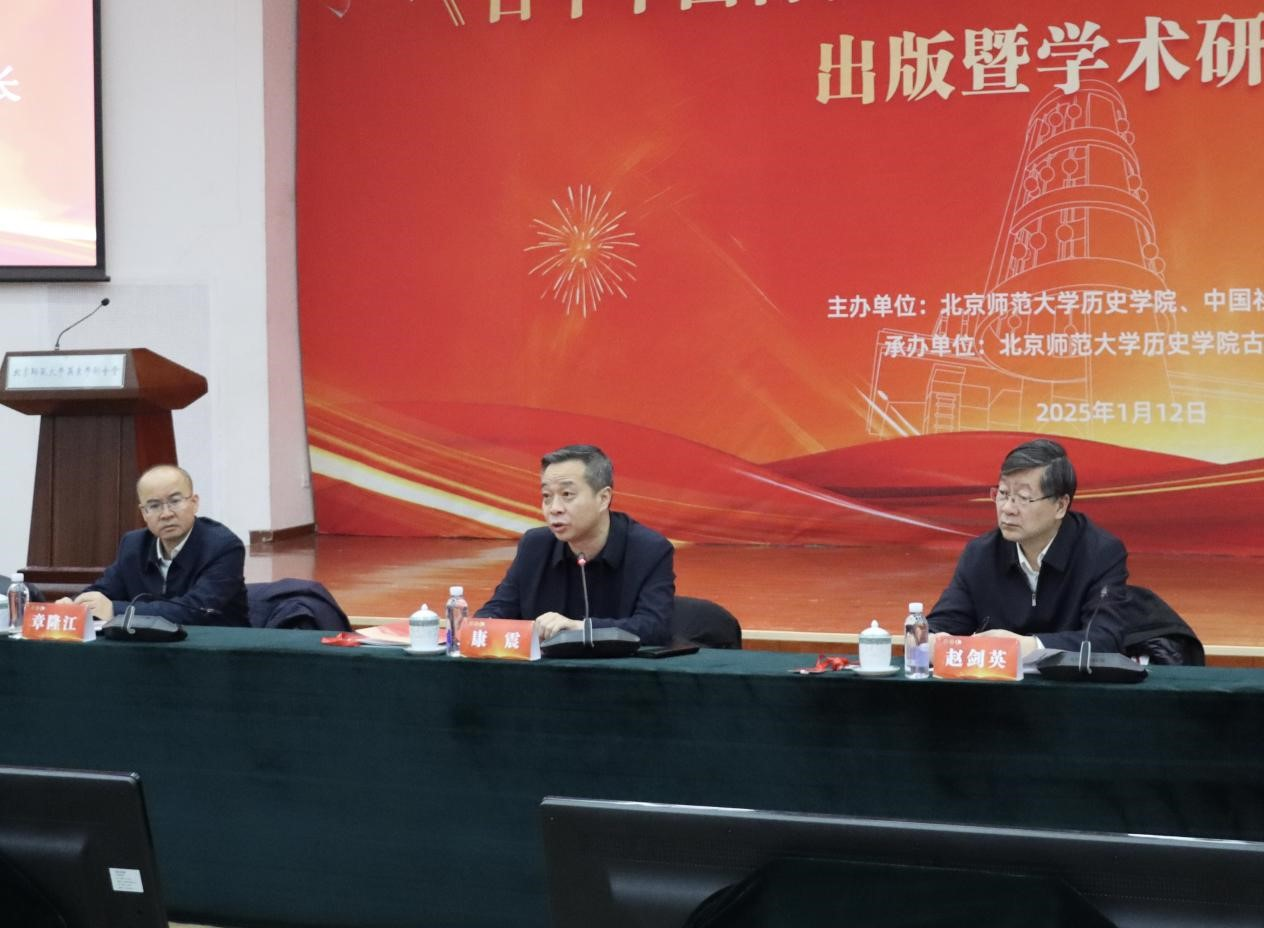 北京师范大学党委常委、副董事长康震在致辞中表示,党的十八大以来,习近平总书记对古籍工作给予高度重视和悉心指导。总书记指出,要“深入挖掘古籍蕴含的哲学思想、人文精神、价值理念、道德规范,推动中华优秀传统文化创造性转化、创新性发展”。这为新时代古籍工作指明了前进方向,提供了根本遵循。《百年中国古籍整理与古文献学科发展研究》是北京师范大学在古籍整理和古文献学领域的最新成果,也是落实中共中央办公厅、国务院办公厅印发的《关于推进新时代古籍工作的意见》的生动实践。