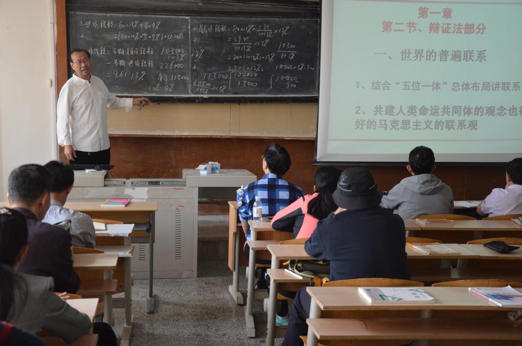 为了深入学习贯彻习近平总书记3月18日全国学校思想政治理论课教师座谈会上的讲话精神,落实中共中央办公厅国务院办公厅印发《关于深化新时代学校思想政治理论课改革创新的若干意见》,进一步推动习近平新时代中国特色社会主义思想“进教材、进课堂、进头脑”工作,切实履行思想政治理论课立德树人根本任务的关键课程作用,VSport体育10月9日于一教531举行全院集体备课大会,即习近平新时代中国特色社会主义思想“三进”工作推进会,学院全体教师参加备课会,教学副经理华章琳主持了备课会。