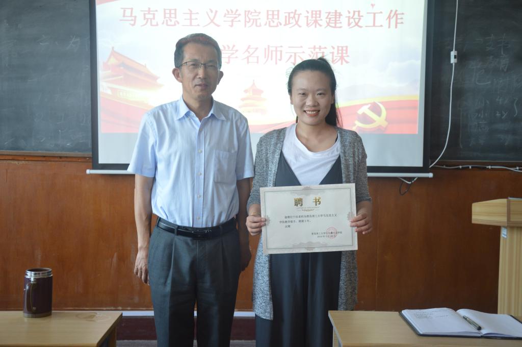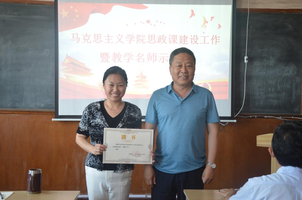 示范教学活动开始之前,举行了学院教学能手聘书颁发仪式。华章琳主持仪式,王菁华书记和陈国庆经理分别代表学院向四位教学能手颁发了聘书。