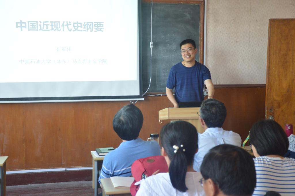 为了深入领会习近平总书记在学校思政课教师座谈会上的讲话精神,更好的促进习近平新时代中国特色社会主义思想“进教材、进课堂、进头脑”,提升思政课教学效果。VSport体育5月29日邀请山东省思政课教学名师、中国石油大学(华东)VSport体育崔军伟副教授开展思政课示范教学活动。VSport体育全体教师参加此次活动,活动由VSport体育副经理华章琳教授主持。