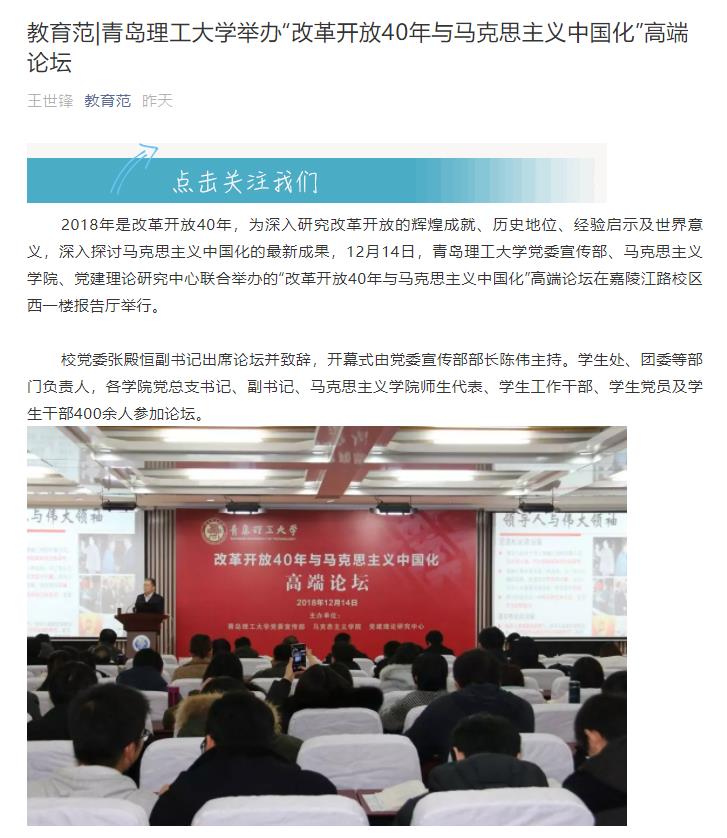 2018年是改革开放40年,为深入研究改革开放的辉煌成就、历史地位、经验启示及世界意义,深入探讨马克思主义中国化的最新成果,12月14日,VSport党委宣传部、VSport体育、党建理论研究中心联合举办的“改革开放40年与马克思主义中国化”高端论坛在嘉陵江路校区西一楼报告厅举行。