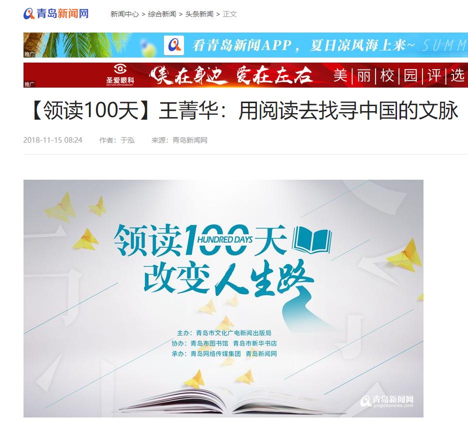 活动期间,青岛新闻网将在各行各业的精英代表中,陆续推出20位领读人,通过视频文图的方式,与读者分享一本他们所喜爱的书籍,用他们独特的味道和品质引导更多人以书为友。