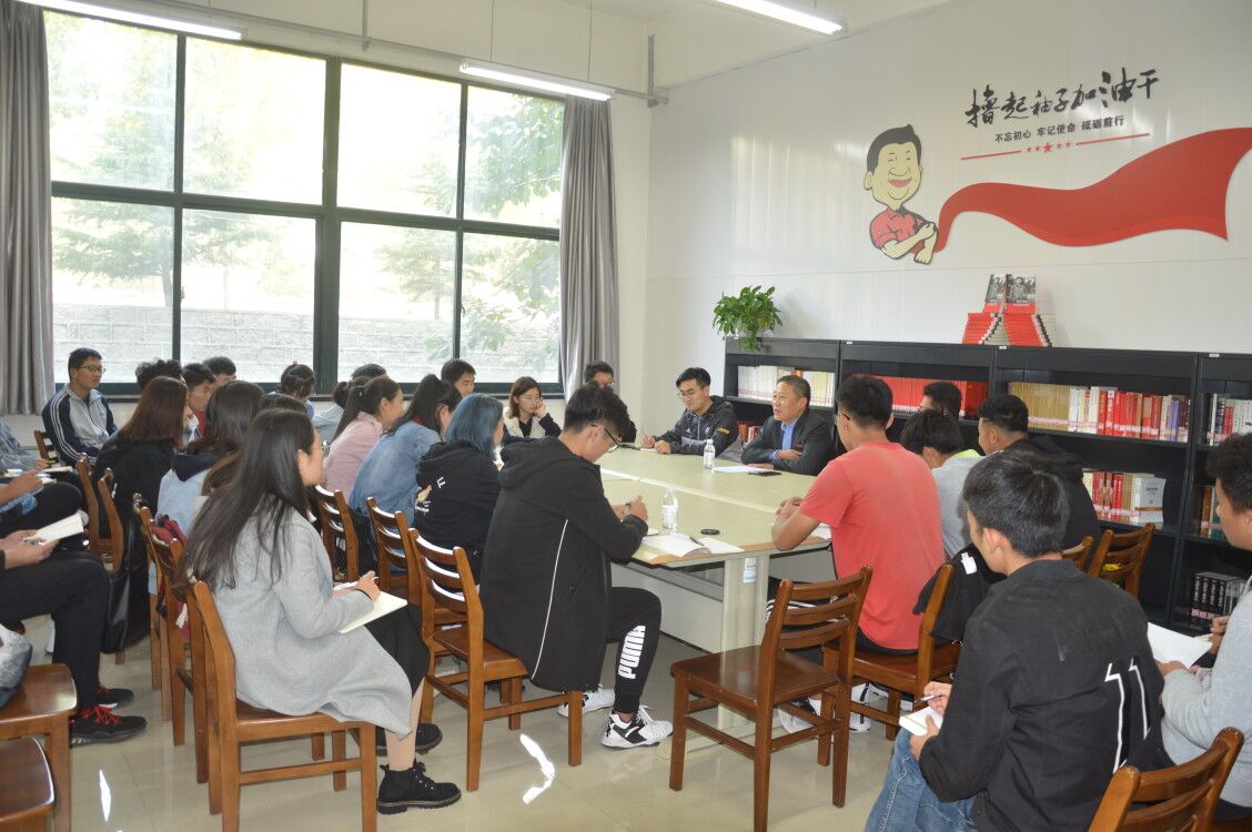 针对先期图书馆、团委征集上来的同学们提出的“如何合理安排老员工活”、“怎样处理人际关系”、“马克思主义与我们生活有什么联系,学习马克思主义对老员工和社会的意义是什么”等问题,王菁华结合自己的老员工活与工作实践,与同学们进行了面对面的交流。
