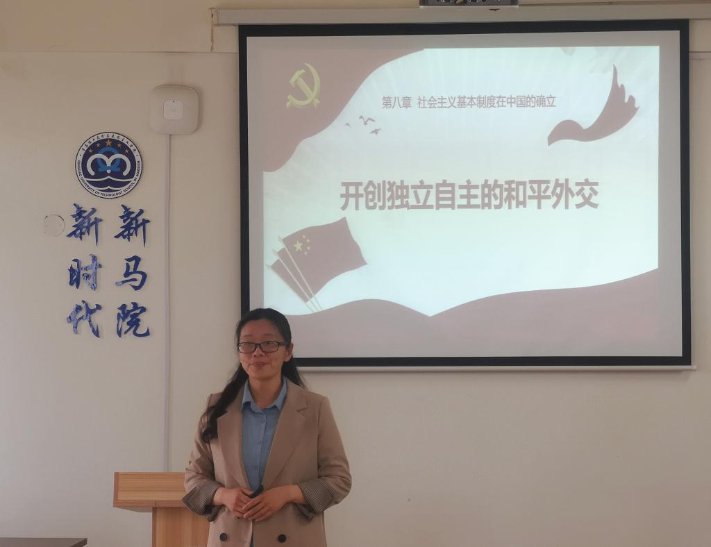 赵筱侠老师以“开创独立自主的和平外交”为主题作了精彩的展示。赵老师以“新旧中国外交方针政策对比”为问题导向,引出新中国开创独立自主的和平外交政策的时间和逻辑脉络,以周恩来总理日理万机、鞠躬尽瘁、励精图治为情感主线,从“破旧立新:独立自主定国是”“睦邻友好:五项原则指国路”“求同存异:万隆会议立国威”“大国风范:大国担当谱功勋”四个方面作了图文并茂、深入浅出的课堂示范。示范课上,华章琳教授作了详细点评。他指出,在思政课教学过程中,一要明确自身特色优势;二要找准问题-导入问题-分析问题-回答问题,做到起承转合、分布合理;三是要注重理论联系专业和生活实际;四是要以内容为王、形式出彩。
