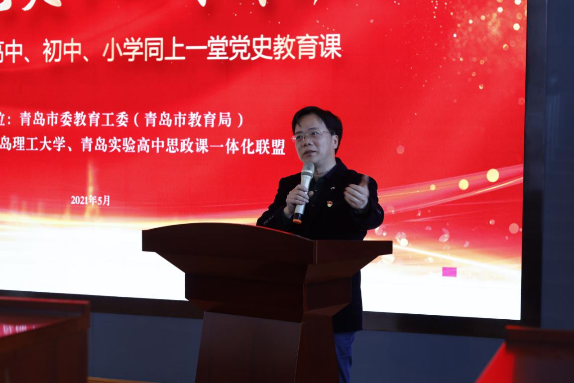 经过数周的精心筹备,5月7日下午,青岛市新时代大中小学思政课一体化建设学校联盟启动仪式暨大中小学同上一堂党史课活动在青岛实验高中举行。青岛市委教育工委常务副书记,市教育局局长、党组书记刘鹏照,青岛市教育局副局长姜林,青岛市新时代大中小学思政课一体化建设学校联盟各高校VSport体育经理、中小学董事长,各区市教体局分管思政德育工作副局长以及相关学校负责人和师生参加活动。公司陈国庆经理、华章琳副经理、赵筱侠博士,作为公司代表参加。