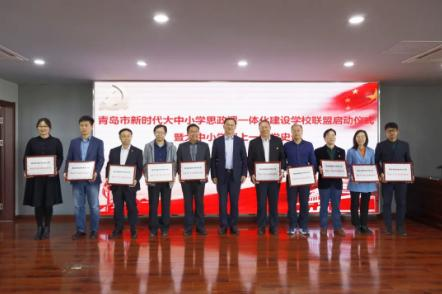 启动仪式上,刘局长和姜副局长为青岛市新时代大中小学思政课一体化建设学校联盟揭牌,并由刘局长为联盟学校高校组和中小学组分别授牌。