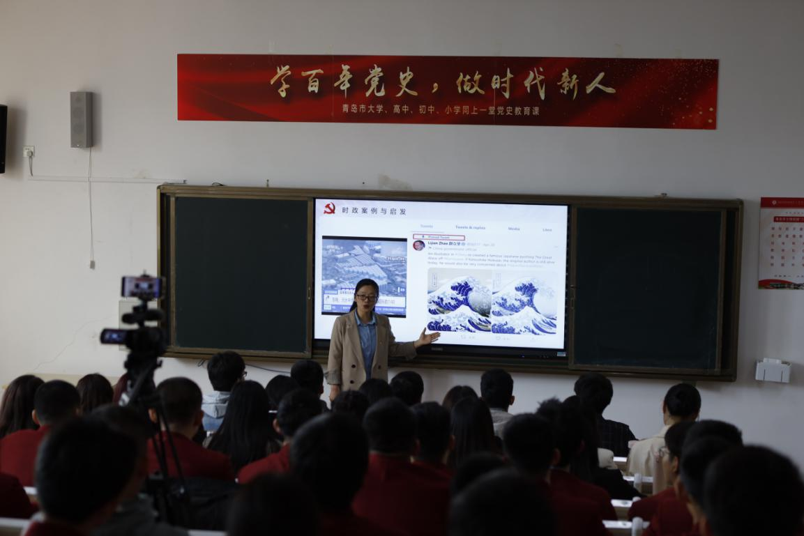 随后,大中小学同上一堂思政示范课上课及观摩活动,在四个会场同时开展。本次示范课以“学百年党史,做时代新人”为主题,公司赵筱侠老师、青岛实验高中张德老师、青岛实验高中附属初中刘嘉梅老师和青岛四方小学魏欣老师分别在四个会场进行授课,到场领导及老师们分组进入课堂听课观摩。赵老师讲授的主题是《中国共产党人民观的百年实践历程》,分阶段对各个历史时期中国共产党的人民观的主要内涵和表现形式进行了阐述,并讲述了丰富、生动的党史故事,来展现共产党人民观的实践过程。课程最后,赵老师引导员工们对“当代老员工如何践行党的人民观,做好时代新人”进行充分讨论,将本节课推向了高潮。员工们指出,这节课既有理论深度,又有实践广度,启发性很强。