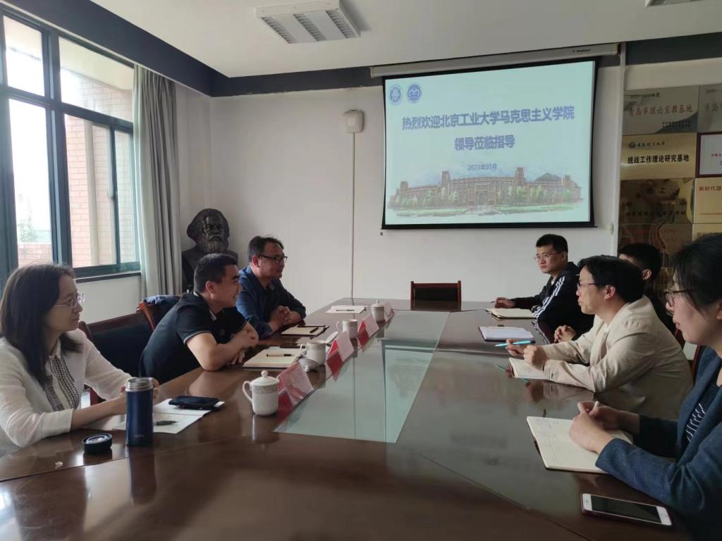 沈自友对北京工业大学马院在团队建设、教学改革、人才引进等方面的情况进行了详细介绍。接下来,双方在加强《毛泽东思想和中国特色社会主义理论体系概论》等思政课程建设,推动概论课与习近平新时代中国特色社会主义思想有机结合等问题进行了深入探讨。