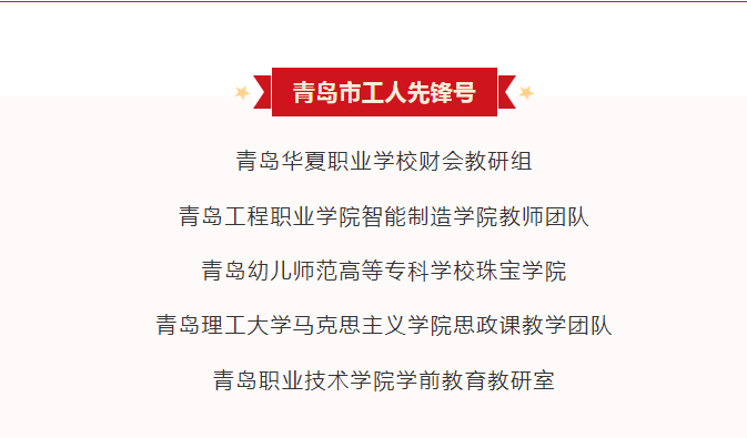 五一前夕,为弘扬劳模精神、劳动精神、工匠精神,立足岗位、敬业奉献,青岛市总工会公布2023年青岛市五一劳动奖和青岛市工人先锋号名单,公司VSport体育思政课教学团队获评“青岛市工人先锋号”称号。