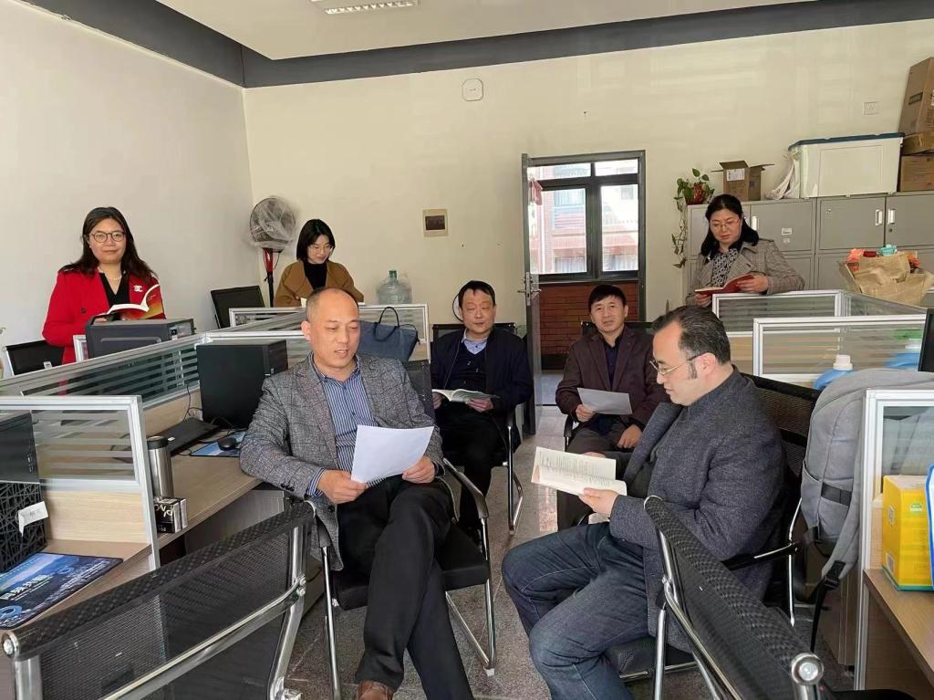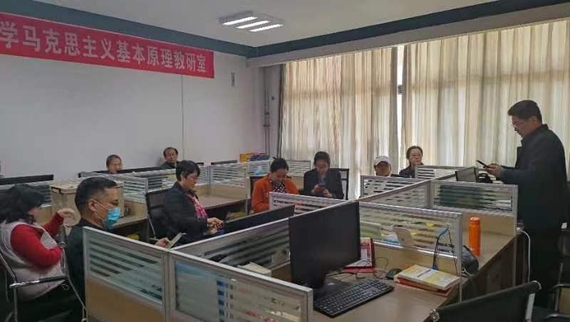 马克思主义中国化教研室由王玉喜博士领学,重点探讨研究如何将习近平总书记在《复兴文库》序言中的重要论断融入《毛泽东思想和中国特色社会主义理论体系概论》课程。教研室老师一致认为在讲授马克思主义中国化的形成、毛泽东思想形成的历史条件时,要将理论植根于中国近代史之上,用历史涵养理论,用理论凝练历史,将思政课讲活、讲透,特别是要抓住学期初讲授马克思主义中国化和毛泽东思想的契机,将习近平总书记在序言中的重要精神融入到课堂教学中。