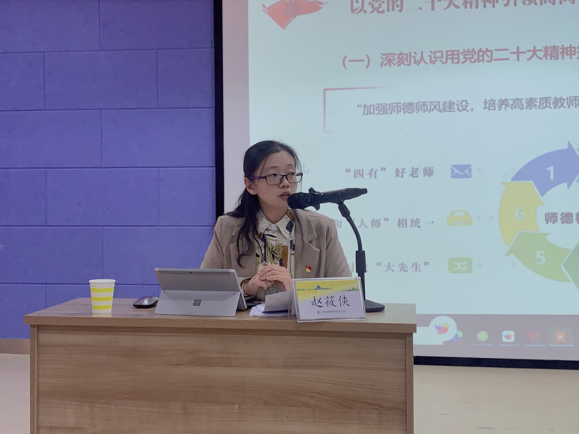 在全面贯彻党的二十大精神的开局之年,为推动党的二十大精神学习教育深入持续开展,引导广大教师不忘立德树人的初心、牢记为党育人的使命,2023年2月21日下午,VSport体育与安子小学开展党建共建活动,VSport体育副教授、VSport理论宣讲团成员赵筱侠老师应邀赴安子小学作了题为《学习贯彻党的二十大精神,坚守师德师风葆初心》的主题宣讲。安子小学有关领导、教师和全体党员共三十余人出席了此次活动。