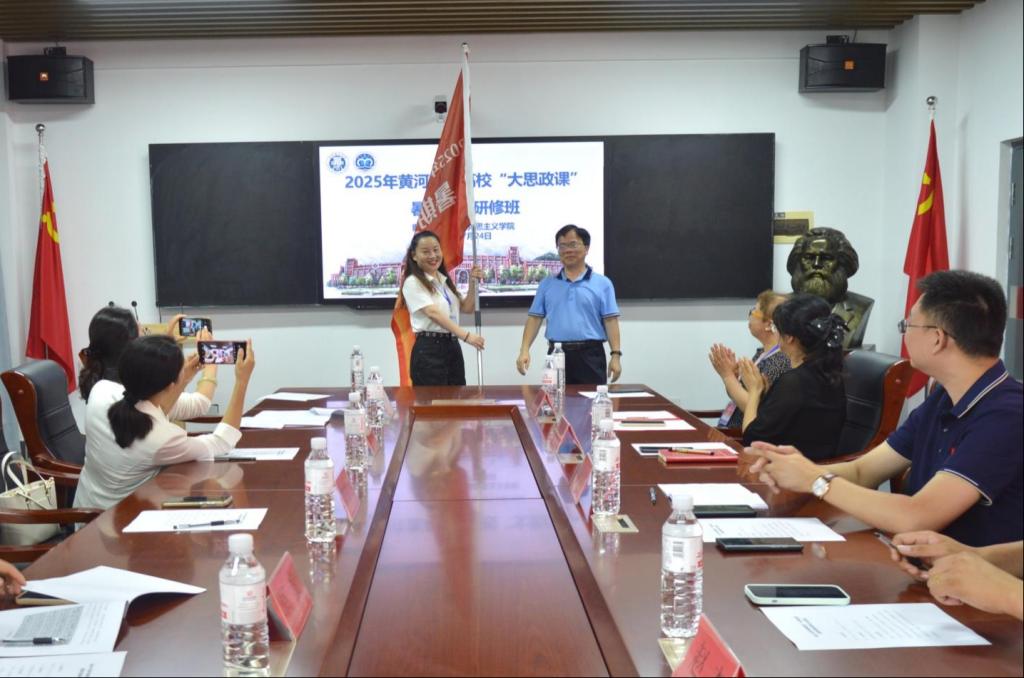 在授旗仪式环节,华章琳和李玉兰共同为研修班授旗,标志着2025年黄河流域高校“大思政课”暑期实践研修班正式启动。