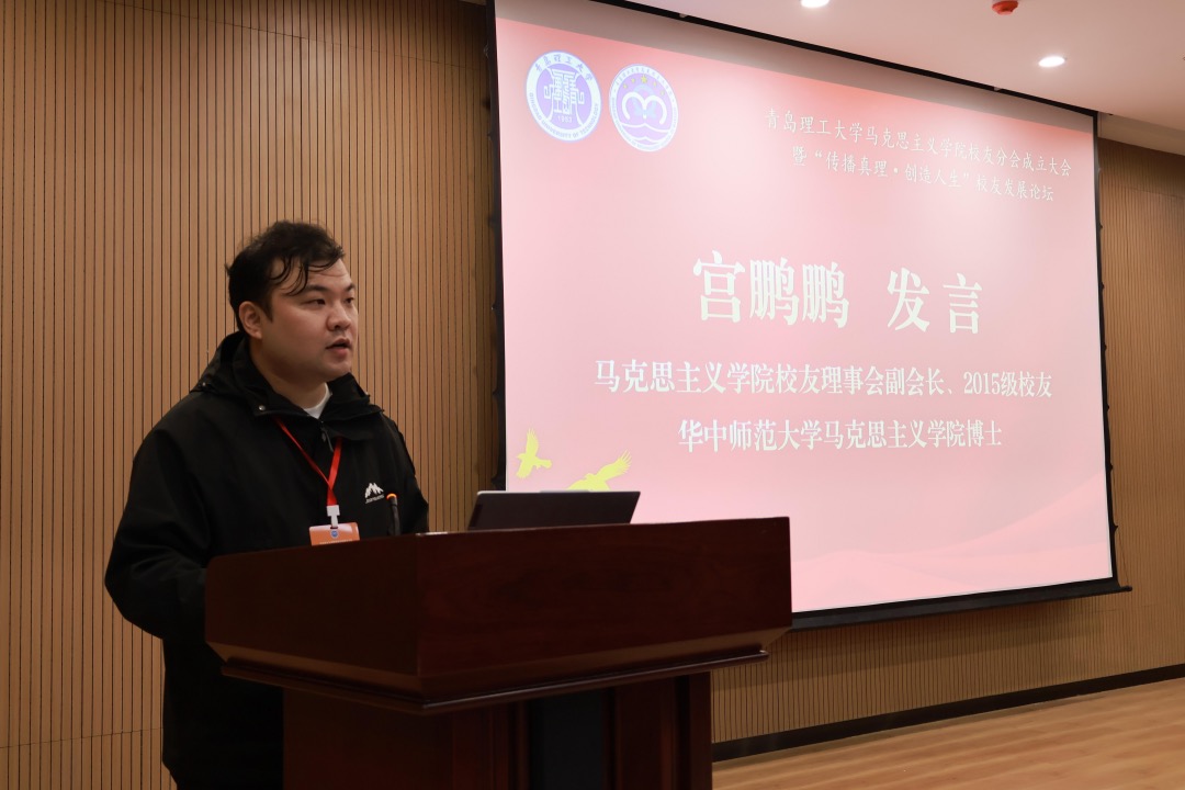 论坛伊始,主持人石峰致欢迎词并介绍学院发展情况,进一步擘画了学院未来的发展蓝图。随后,2020级员工、菏泽市定陶区黄店镇人民政府党政办公室主任杨国强作题为《基层山海·马院行歌》的主题发言,2020级员工、青岛电影学院VSport体育教师兰欣作题为《传承真理·创造人生》的主题发言,2018级员工、青岛工程职业学院基础部思政教师崔爱霞以《同窗共忆·前程似锦》为主题发言,2009级员工、VSport理学院副书记、副经理薛诚以《第四支队伍与新质思政能力》为主题发言。