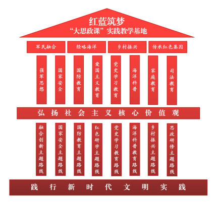 “红蓝筑梦”国家“大思政课”实践教学基地位于青岛古镇口核心区,拥有54公里长的“黄金海岸线”,南靠古镇口军港,东与素有“海上画屏”美誉的北方第一高岛灵山岛隔海相望,西临大珠山,北接中央公园,地理位置得天独厚。区域内山、海、岛、礁、滩交相辉映,碧水、青山、蓝天、奇石和谐交融,自然环境优美秀丽。实践教学基地深挖红色资源、海洋资源、国防资源,结合党史学习教育,秉承“讲好红色故事、传播海洋文化、融合创新发展”的宗旨,以融合创新、向海图强的“蓝色之光”点燃青年员工成长成才的“红色理想”,紧密围绕向海而生、向海图强等主题,打造特色鲜明的国家级“大思政课”实践教学基地。每年接待各类考察学习及宣教活动6000批次,吸引来自全国各地的游客20万人次。