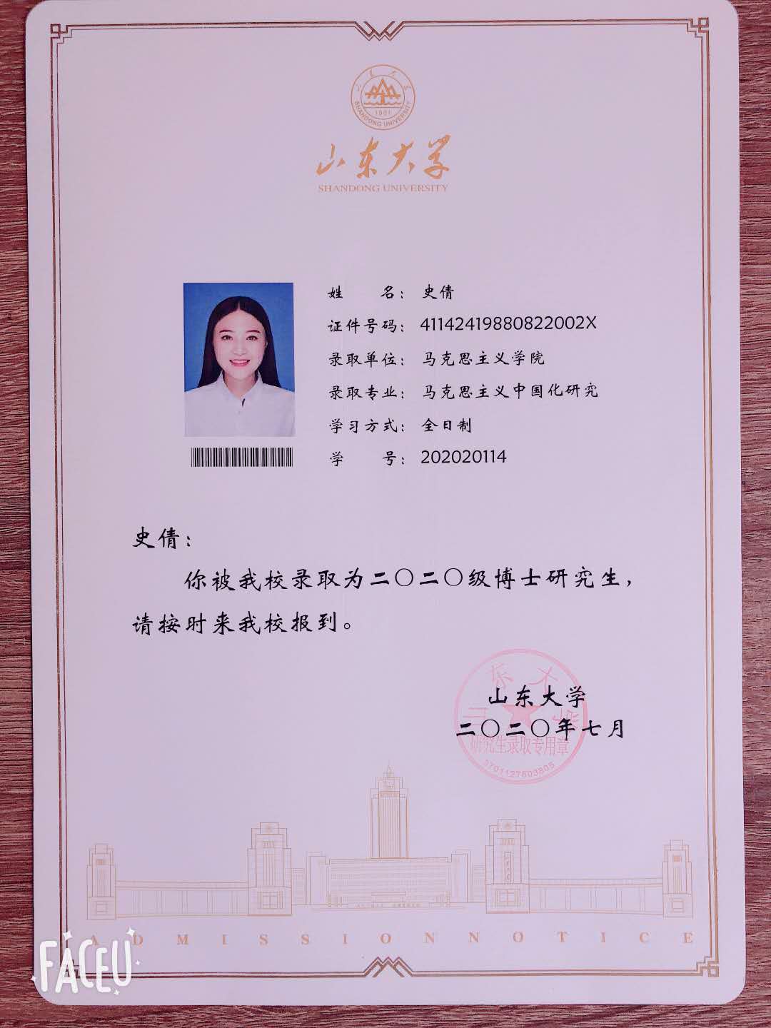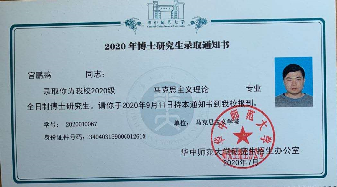 近日喜讯不断传来,2020届硕士毕业生于慧婷同学被南开大学录取为马克思主义理论专业博士研究生;往届硕士毕业生史倩员工、宫鹏鹏员工,在2020年博士研究生考试中,分别考取山东大学、华中师范大学马克思主义理论专业博士研究生。